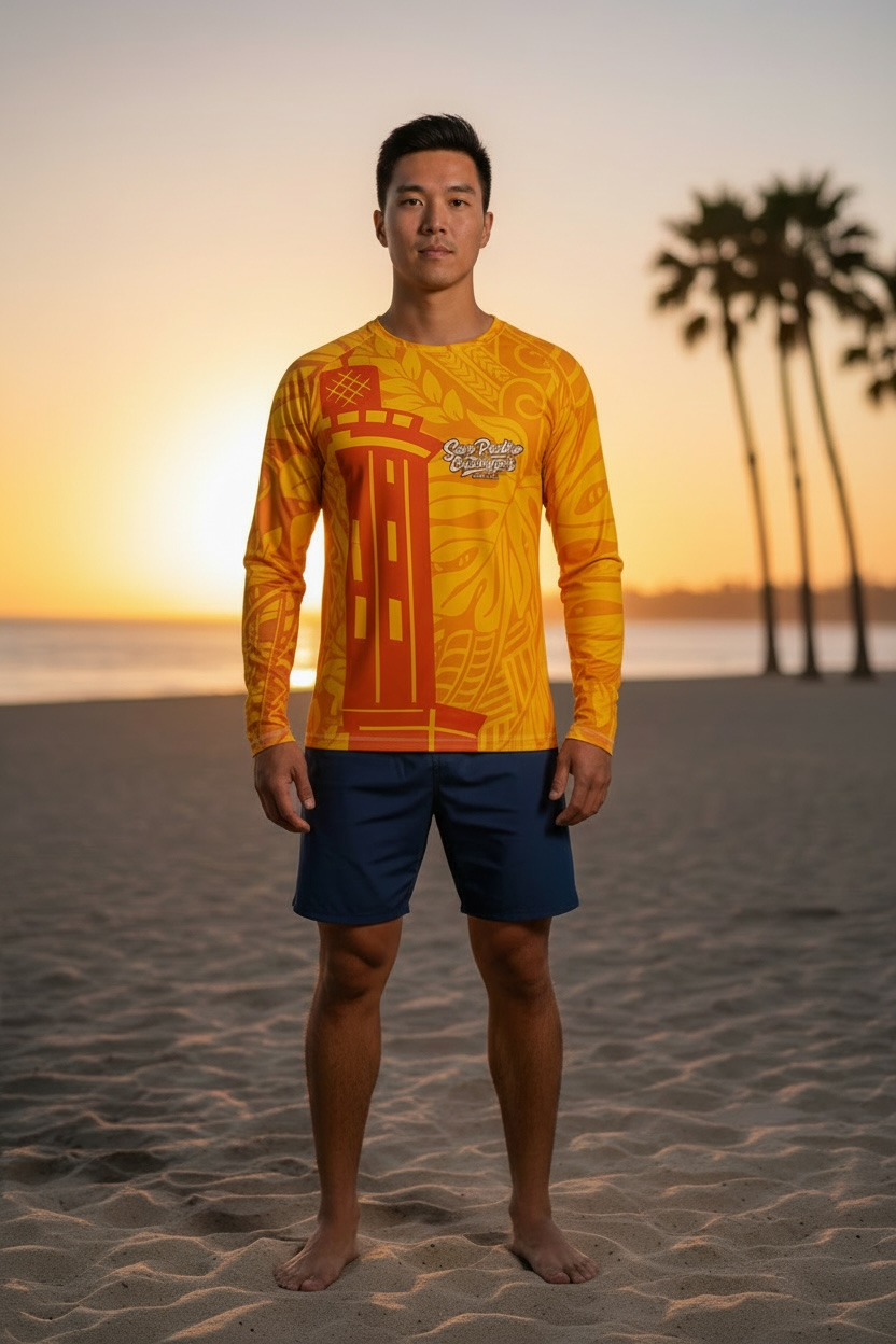 This unisex dry-fit jersey features the historic Point Fermin Lighthouse in San Pedro, CA. Built in 1874 to guide ships, it continues to inspire the San Pedro Outrigger Canoe Club and serves as a reminder of our connection to San Pedro Bay.